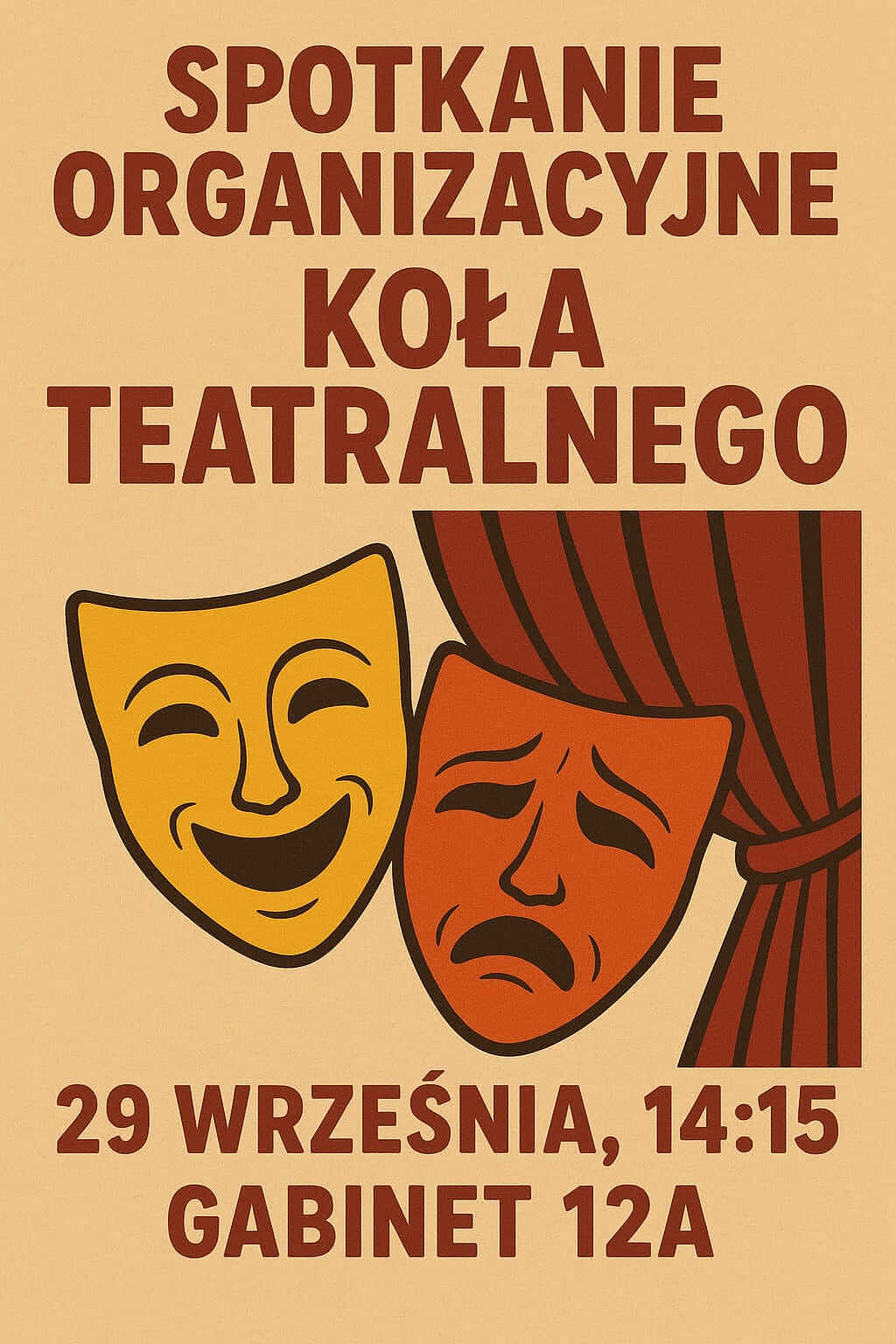 🎭 Zaproszenie na spotkanie Koła Teatralnego! 🎭 Lubisz wcielać się w różne postacie? Masz ochotę spróbować swoich sił na scenie, a może po prostu chcesz przełamać tremę i świetnie się bawić w gronie kreatywnych osób? Zapraszamy Cię do Koła Teatralnego, w którym: ✨ odkryjesz magię sceny, ✨ rozwiniesz swoją wyobraźnię i pewność siebie, ✨ poznasz fantastycznych ludzi, ✨ będziesz mieć okazję tworzyć coś wyjątkowego! Nie musisz mieć doświadczenia – wystarczy chęć i odrobina odwagi. Spotkania odbędzie się 29 września o godz. 14.15 w Sali 12A.